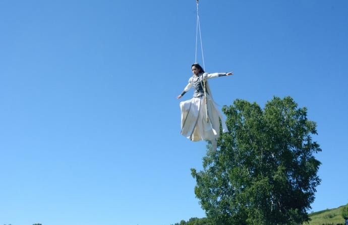 片中多次出现吊威亚的场景,这对于恐高的她来说,无疑是一种难言的折磨。