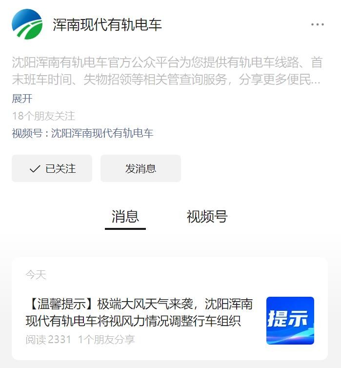 沈阳浑南现代有轨电车将密切关注天气变化,及时调整行车组织方案并做好现场客流引导,全力保障乘客出行安全。感谢您的理解与配合!