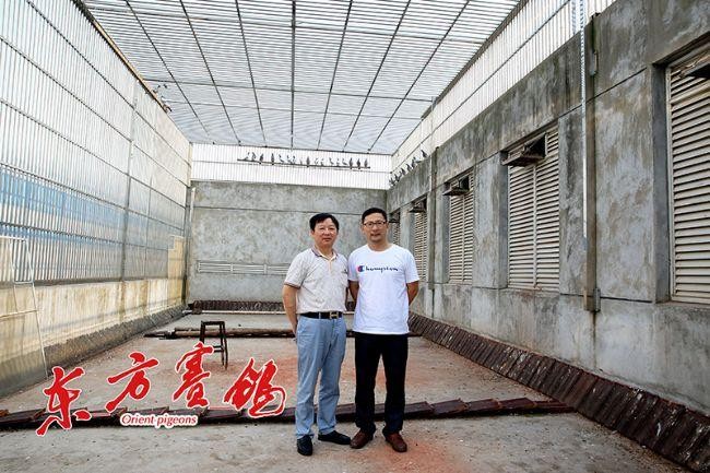 东方赛鸽杂志主编段衷海和孙新苗在鸽舍内合影