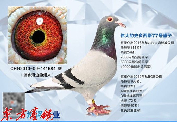 孙:镇棚老雄77号拍回后作育的第一个儿子送去了2010年西安威信公棚的春赛,500公里决赛中第一梯队6羽同归,获得14名。我经常开玩笑说它欠我一个冠军,结果这个14名作出的女儿在2015年甘肃庆阳帝珲公棚决赛获得冠军,还是第一梯队6羽同归。因为对这路鸽子的信任,这羽鸽子所有的指定全部指上了,获得这场500公里决赛的15项指定冠军,赢了一百多万。