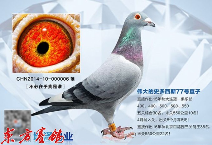 比赛次日,孙总就驱车赶到无锡鸽友家里,得知此鸽不但是本场国家赛冠军,还有可能是无锡市“天一杯”三关鸽王前三甲,随即与鸽主协商,不惜重金第一时间将此羽国家赛英雄收归麾下。