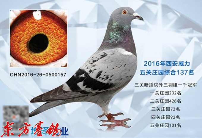 2016年西安威力庄园5关3个方向综合鸽王137位,3关暗插院外1K组冠军;一关232名,二关428名,三关72名,四关92名,5关101名