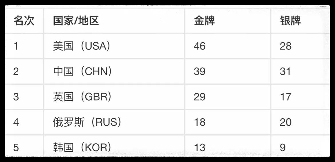 5.俄罗斯奥运队 20金
