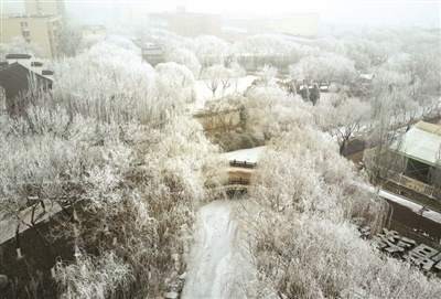 13日一早,滨海新区依旧被大雾笼罩,能见度低,空气质量不佳。不过,城市景观树上却挂满了雾凇,格外美丽。受弱冷空气影响,中午雾霾开始转好,久违的太阳也露出了头。据滨海新区气象台预报,由于目前风力较小,雾霾还无法彻底消散,预计14日夜间到15日白天,将会出现5-6级的西北风,届时新区才能重现蓝天。