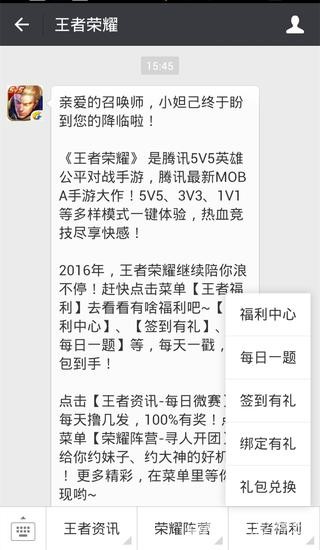 我们打开微信搜索“王者荣耀”公众号即可,这里的王者荣耀礼包还是蛮丰富的,这也是获得王者荣耀礼包的一种方式,不知道怎么获取王者荣耀礼包可以去看一看。