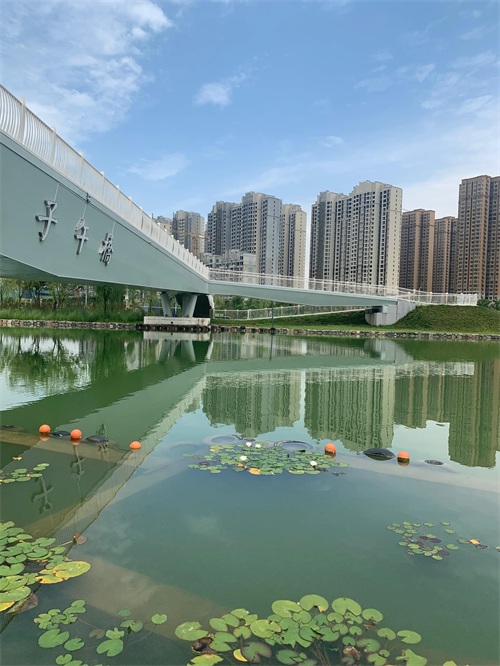 徜徉在长安公园,山体、坡道、桥梁、水系巧妙连接,漫步其中,心旷神怡。