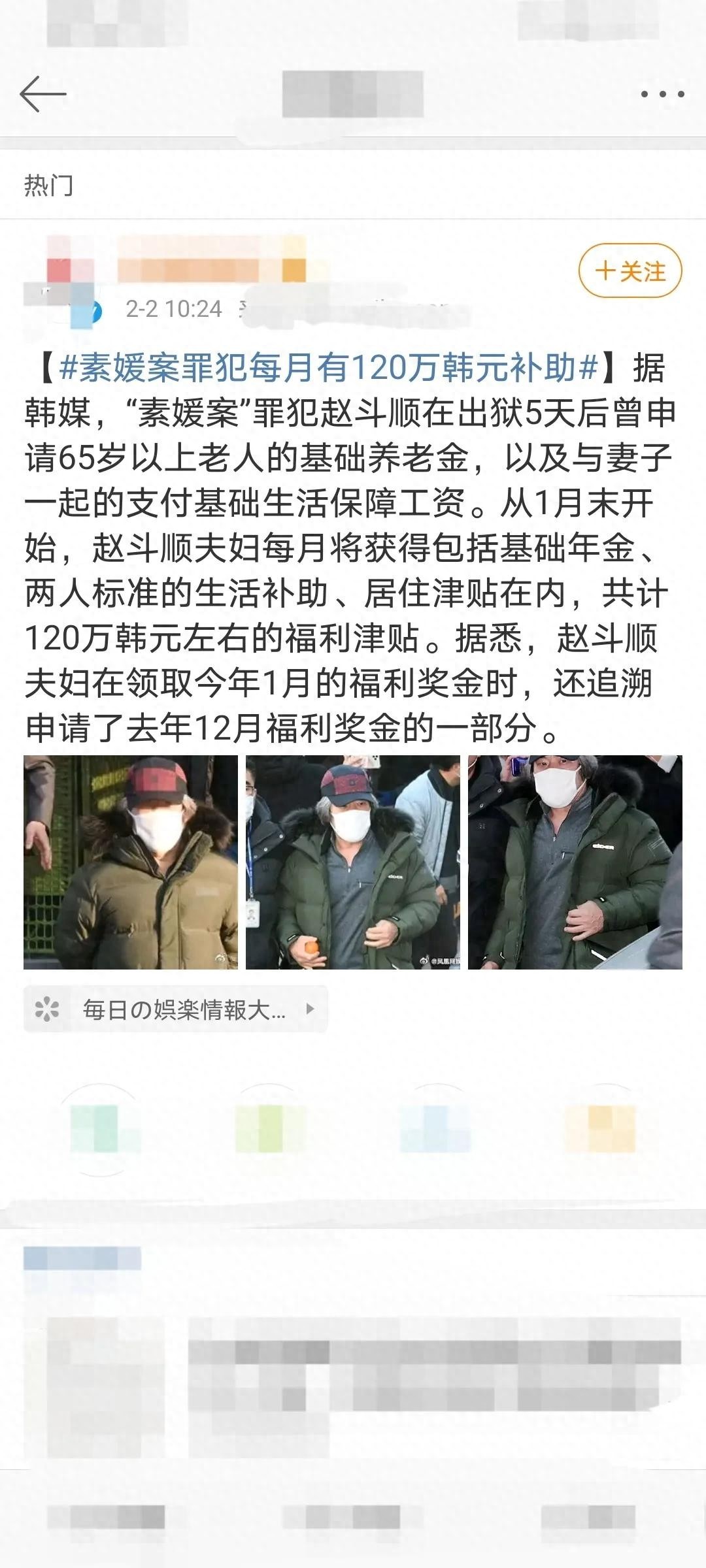素媛案犯赵斗顺不仅出狱了,还每月可领120万韩币养老金,折合人民币将近七千元!
