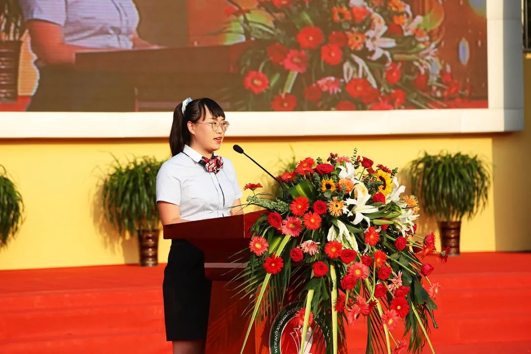 郭丽萍老师和韩铭熙秋同学分别作为教师代表和学生代表上台致辞,从自身经验出发提出了新学期的建议。郭丽萍老师表示,作为一名271教师将勇担育人使命,不忘立德树人的初心,谨遵271教育的培养目标,做一名有崇高的教育价值追求、有强烈的使命感、有学习能力、有研究能力、有较高的课程课堂水平的老师。并从转变思维方式、真实目标认知到位、要有面对国家命运的赤子之心的三个方面要求全体峡实学子明确将来将要担负的社会责任,把家国情怀内化于心,为中华之崛起而读书,每个人创造的价值一定会汇聚为中华民族伟大复兴的力量。韩铭熙秋同学寄语全体同学要制定好新学期的真实目标,要在真实目标的引领下努力拼搏,每天利用成长日记做好规划,在实践中落实、反思、成长,人人争做有理想、有目标、有责任、有自我管理能力的合格的271学子,给学校、给家长一份满意的答卷。