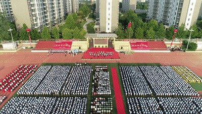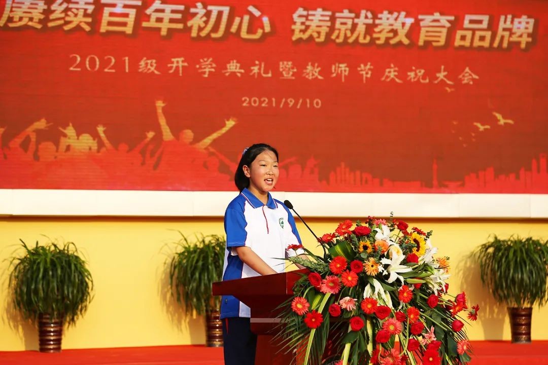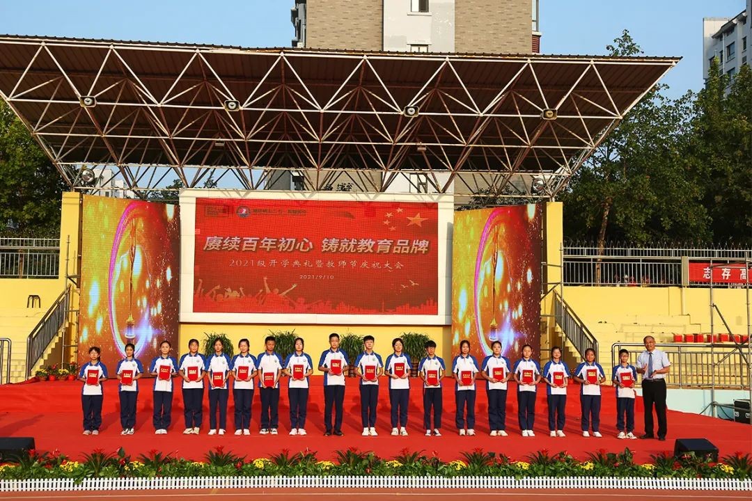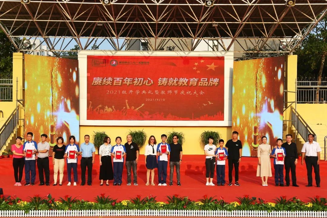 金色九月,阳光明媚,秋风送爽。9月10日下午,潍坊峡山二七一实验初中在学校运动场举行“赓续百年初心·铸就教育品牌”2021级开学典礼暨教师节庆祝大会。潍坊市教育局峡山分局党委书记、局长张少军,山东二七一教育集团总校长、潍坊峡山二七一实验初中校长赵丰平,山东二七一教育集团副校长刘树忠,山东二七一教育集团副校长韩守信,潍坊峡山二七一实验初中党支部书记、执行校长陈世山以及集团各中心领导、学校全体师生、承训部队教官、家长代表出席了本次活动。