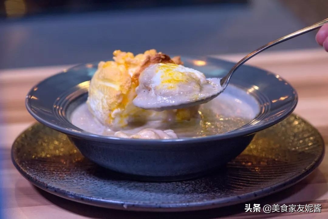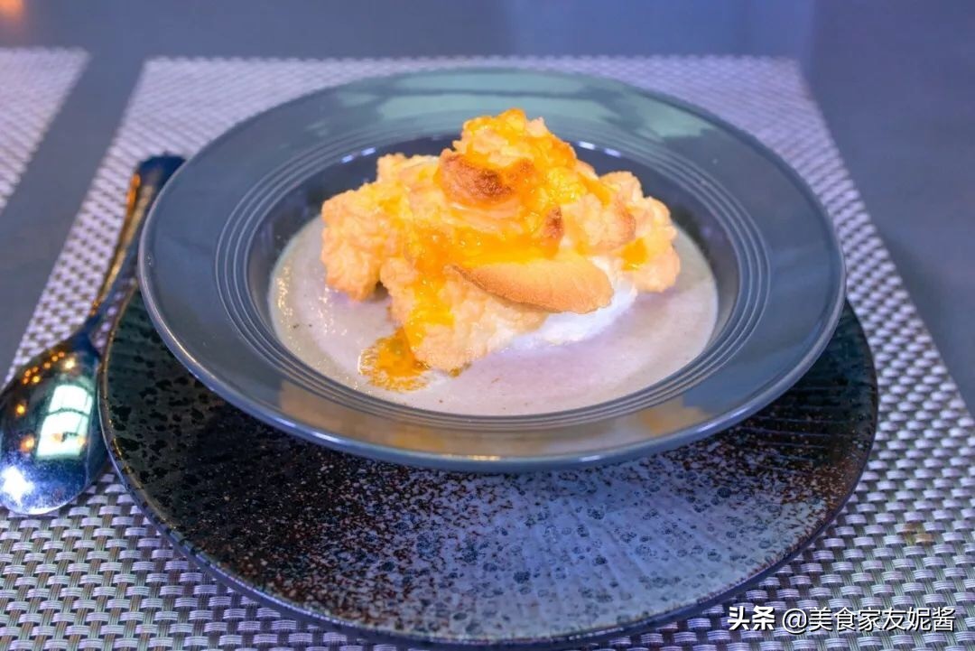哇~ 造型如此别致的奶油蘑菇汤,让人简直不忍心吃它!忍不住“手机先吃”——拍几张美美的照片,用勺子舀一勺烤好的蛋白泡上奶油蘑菇汤,仿佛棉花糖在口中融化开来,太美妙了!这样的奶油蘑菇汤实在是太美妙了,非常适合给心爱的人一次惊喜哦。