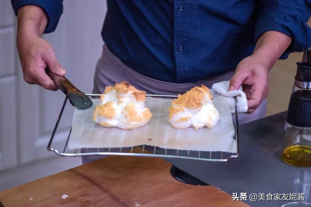 干式蛋泡:打发后的蛋白即使将碗倒置也不会流出来。