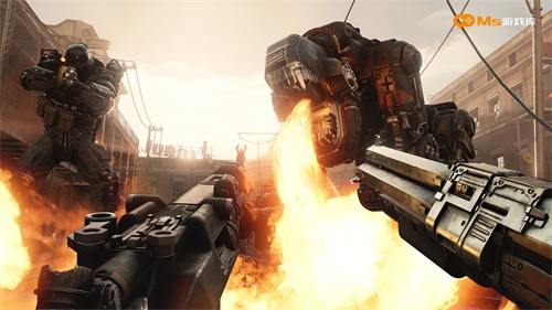 《德军总部2:新巨像》保留了系列一贯的第一人称射击风格,但在游戏玩法上进行了一些创新。玩家将能够使用各种新武器和科技,包括高级火器、能源武器等。游戏中引入了双武器系统,使得玩家可以在战斗中更加自由地切换武器,提高了游戏的策略性。