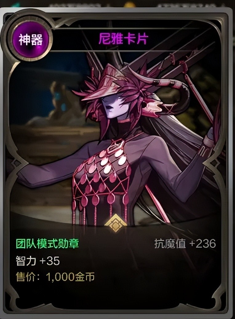接下来是尼雅卡片,这张卡片可是团本勋章卡,能够增加35智力。听起来是不是很诱人?而且,这张卡片的价格目前处于低谷状态,如果你要玩四姨或者女巫,赶紧趁着现在这个机会囤一张!