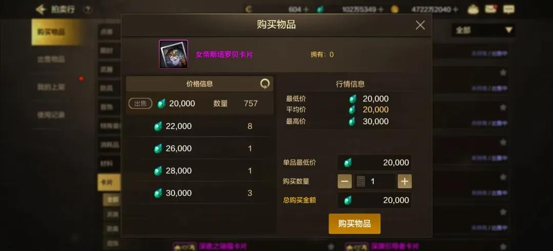 接下来,我们说到这张女帝斯塔罗贝卡片。说实话,这张卡片的性价比真的非常高,智力+68的加成,简直是四姨的完美搭档!虽然它在65版本依然是毕业粉卡,但是价格现在依旧偏低,真的非常划算。如果你准备为四姨囤货,真的不能错过这一张!它的性价比简直是高得令人发指!就算你现在不急着打造四姨,买一张放着也是稳赚不赔,价格早晚会被推高的。