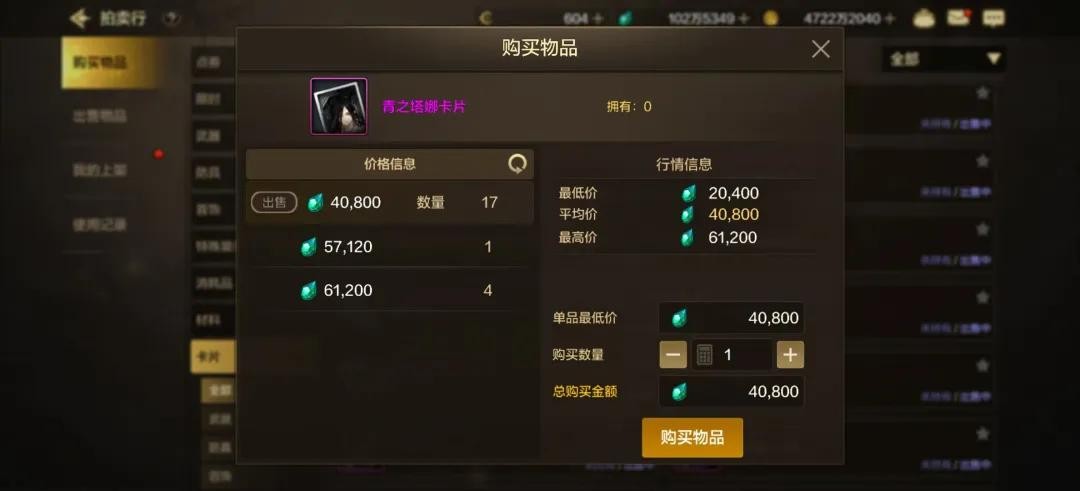 尤其是如果你有毕业武器——小恶魔的剪刀,那你就知道,暗属性攻击的重要性有多大了!不过这卡片的特别之处在于——四姨的本命甲是重甲,而重甲中没有提供暗属性攻击的加成,所以这张青之塔娜卡片必定会涨价!其实这张卡已经涨过一次了,最开始价格才2w泰拉,现在已经悄悄地上涨了,趁早入手吧,后悔可来不及!
