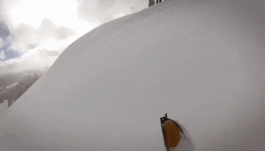 遇到雪崩很可怕,尤其是遇上硬厚雪雪崩,你身边的大面积硬雪块带着你迅速下滑时速可以达到70-80km/h,陷在其中的人会失去所有控制,脚下不会有任何支撑完全用不上力,磕磕绊绊没方向地翻滚,什么都看不见,很有可能会被带着坠崖或撞树,根本不可能从中挣脱出来。