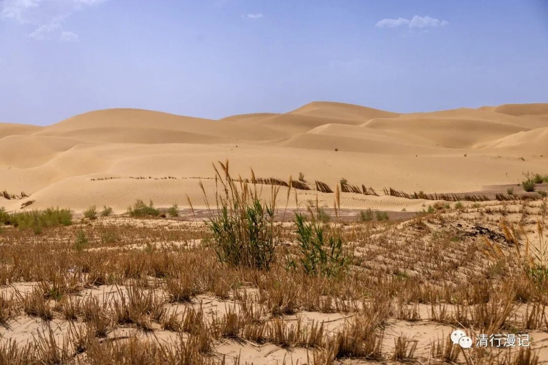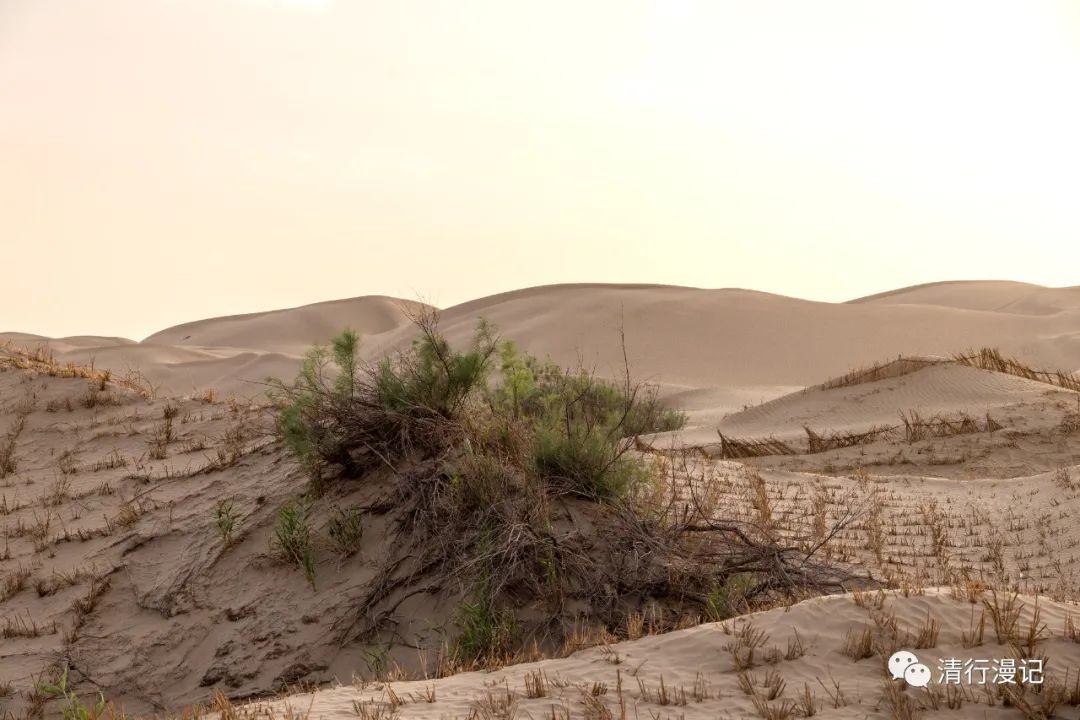 我们不敢深入沙漠太远,没有固沙的地方很容易陷进去,所以也未看到多奇妙的沙丘造型。