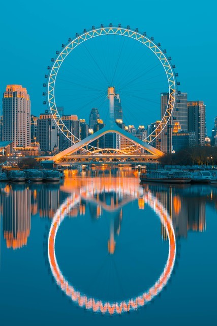 天津之眼是一座巨大的摩天轮,位于海河沿岸,是天津的标志性景点之一。乘坐摩天轮,你可以俯瞰整个城市的美景,尤其是夜晚的天津夜景更加迷人。这里也是情侣们约会和拍摄婚纱照的热门地点。