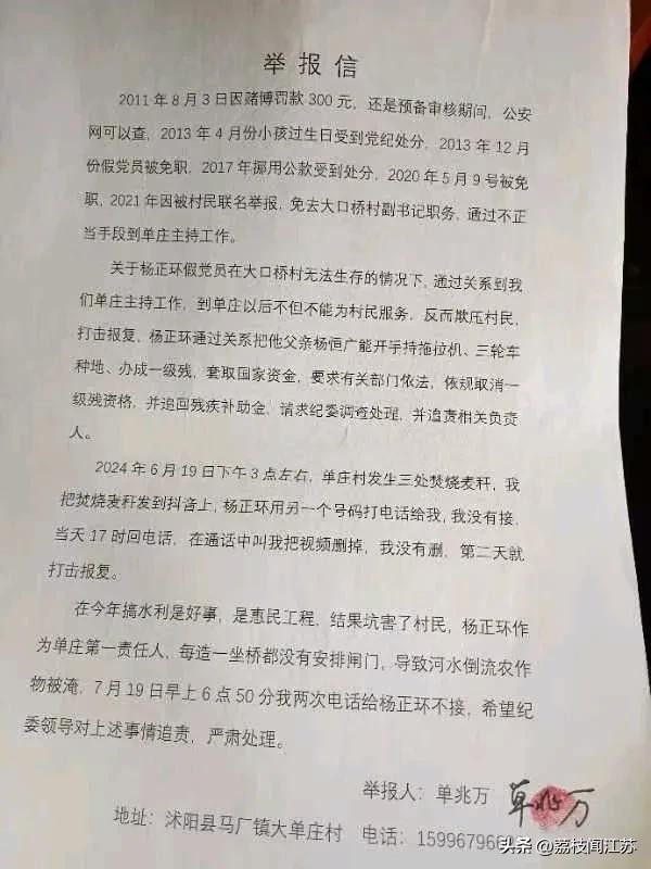 老百姓实名举报沭阳县马厂镇大单庄村干部杨正环