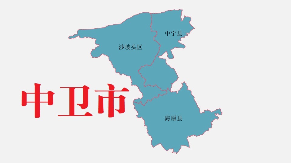 中卫市,市政府驻沙坡头区。位于宁夏回族自治区中西部,宁夏、内蒙古、甘肃交界地带,东与吴忠市接壤,南与固原市、甘肃省白银市相连,西与甘肃省白银市交界,北与内蒙古自治区阿拉善盟毗邻。