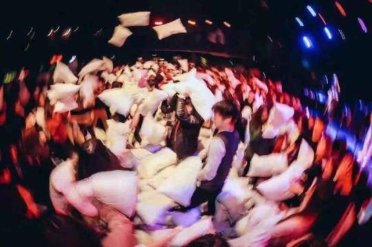 叫上小伙伴一起,在国色天香跨年夜里加入电音枕头轰趴,拿起枕头一起放肆砸过去,看漫天羽毛如同飞雪般散落。