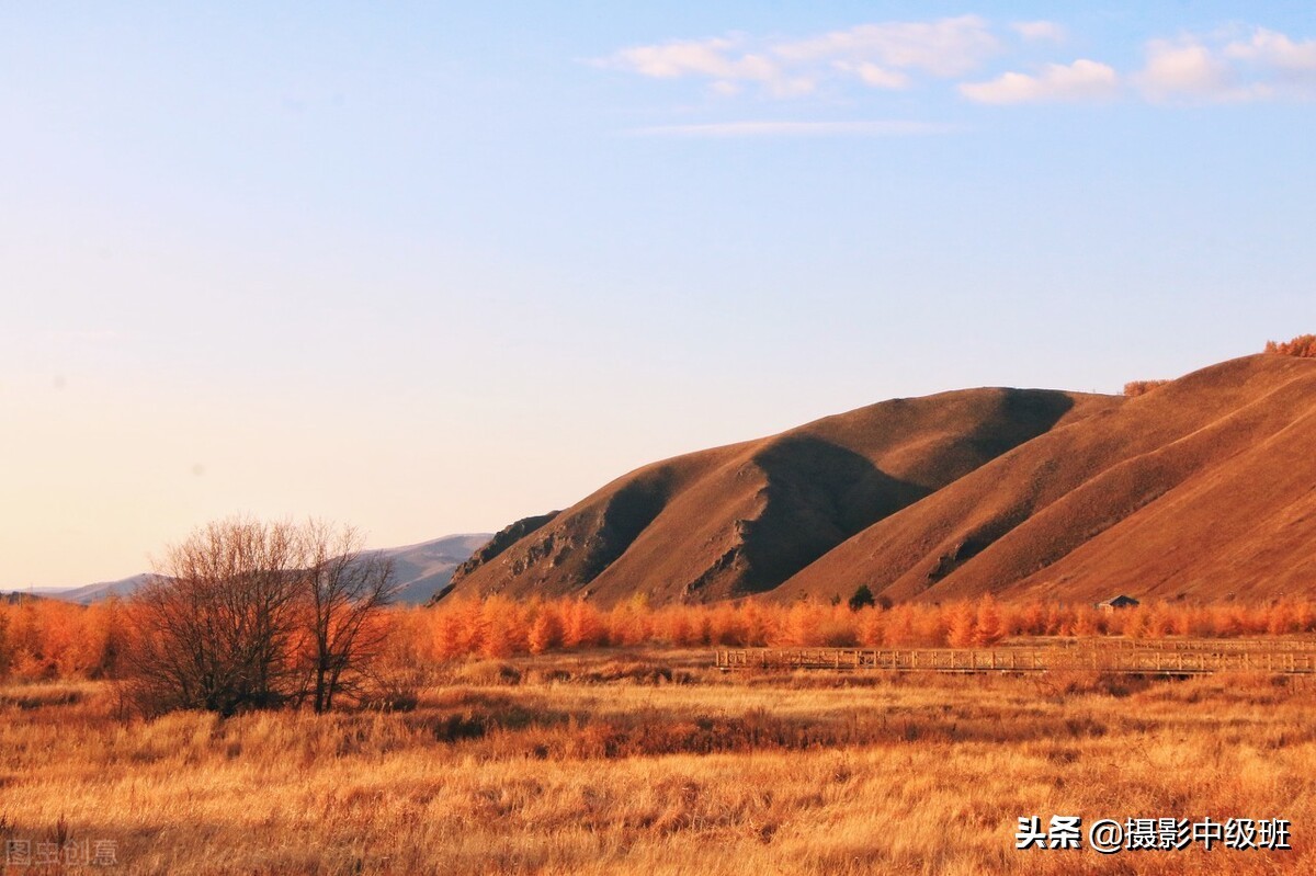 再说,风光照片的主题。下图(图十三),一片荒草地,草地左侧有一丛小树,右侧远处半拉山包。这是什么主题呢?不明确。最多是秋天的田野这种泛泛的主题。