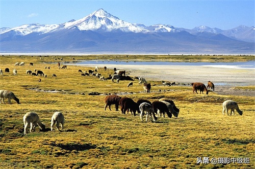 相对来说,下图(图十四),画面中远处是雪山,近处是草地和湖泊,趣味点是羊群。主题很明显,人间的天堂嘛。