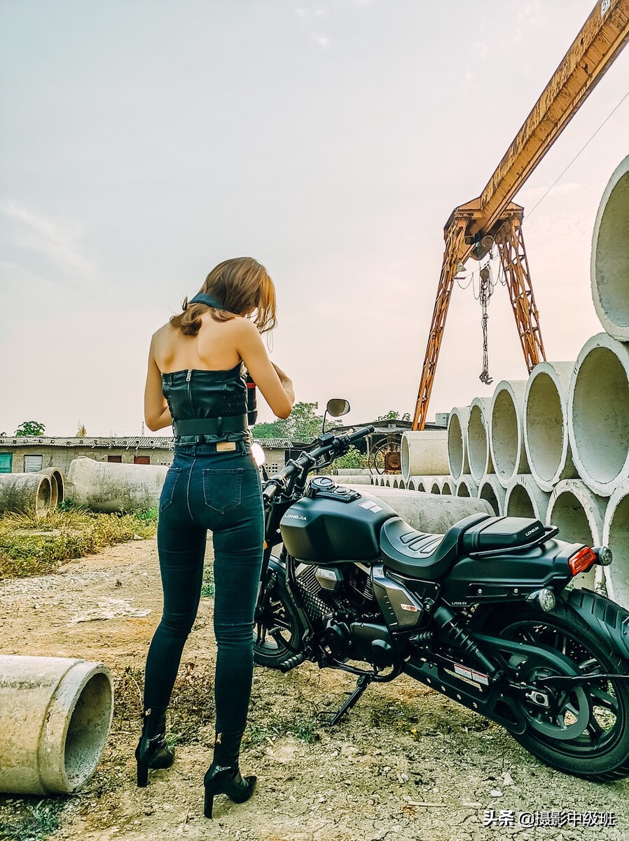 下图(图一),女子的造型和摩托车是比较搭配的。但是环境、背景中乱七八糟的元素,使得画面十分杂乱。而且,这种堆满水泥管道的环境与人物炫酷的风格实在不搭。