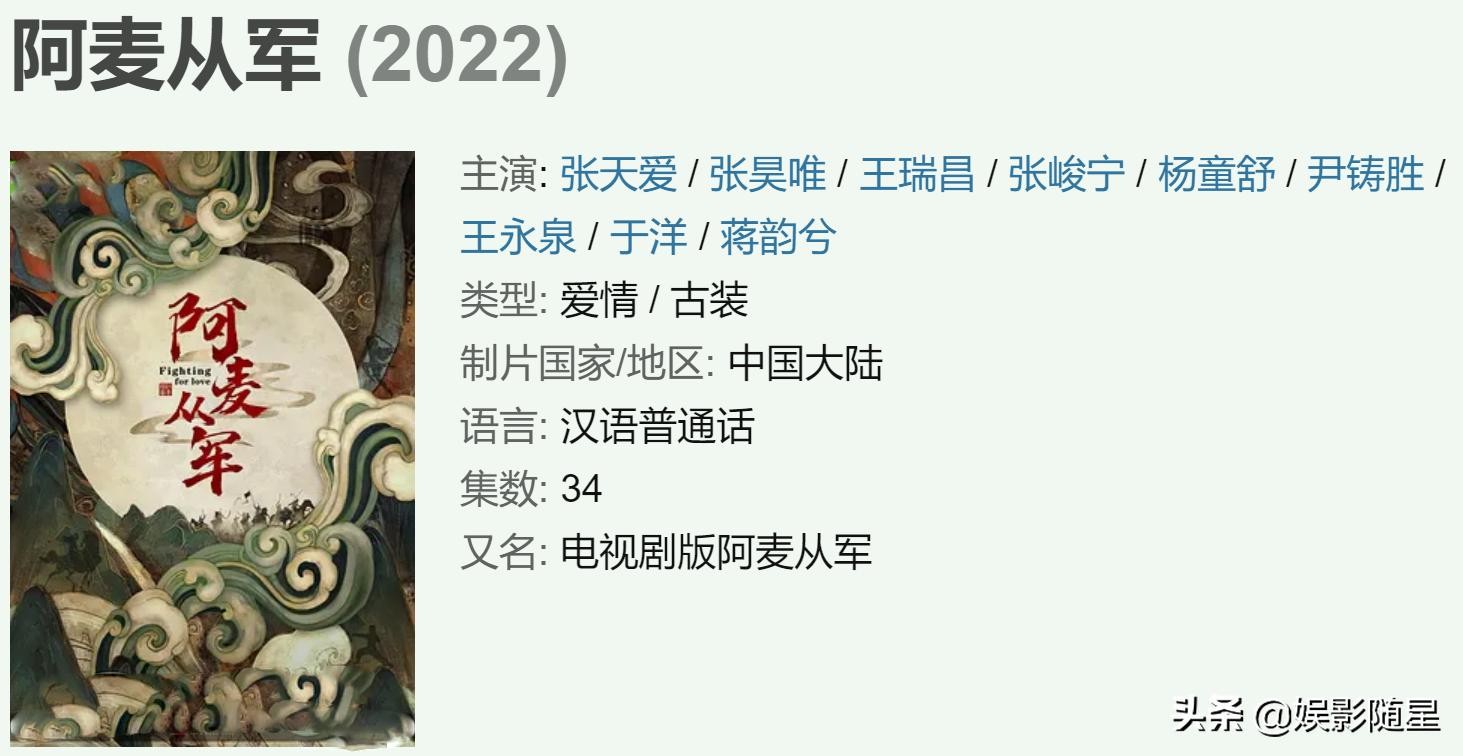 最后,关于《阿麦从军》这部古装爱情剧的相关话题,咱们今天就先暂且聊到这里。不知道大家对于“女战神”张天爱的精彩表现是否期待呢?欢迎在下方留下您宝贵的看法和评价哦!