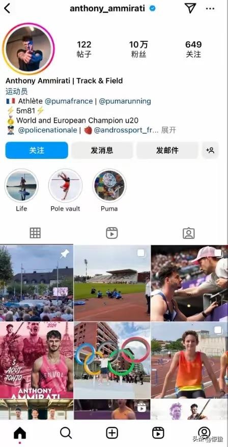 事实上,阿米拉蒂是一位优秀的撑竿跳选手,他2022年8月以5.81公尺打破法国青少年撑竿跳高纪录,因此他的落败让许多粉丝深感遗憾,许多人也涌入他的IG留言,为他加油打气。