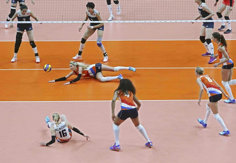 荷兰队双人拦网 强力阻击朱婷 (来自:腾讯体育)