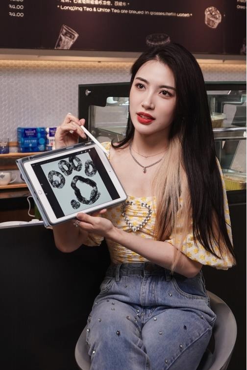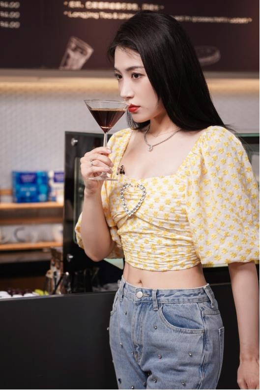 在体验制作“钻石”咖啡时,戴萌又显呆萌本色,把咖啡调制过程比作“在实验室里做实验”,做出了渐变层次,并赋予了全新的名字“钻石星辰”,充满浪漫的想象力的全新创作,成功闯关,集满了闪电印章,成功赢得蛋糕奖励。品尝时,她笑说会和7SENSES成员一起逛街吃甜品,Cue到了好友许杨玉琢,笑称她是“奶茶仙子”,总是带着她们一起点奶茶,“我总是一口气喝完,比起奶茶,现在更偏爱咖啡”。