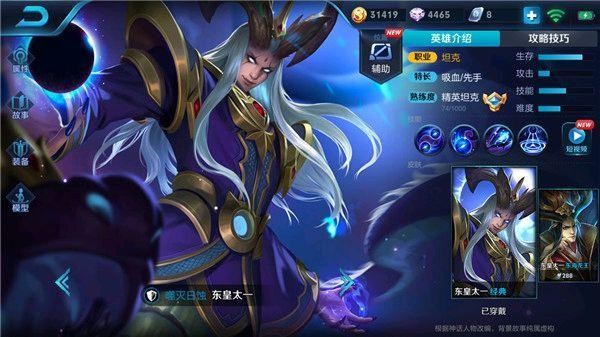 东皇太一自从上线以来一直不温不火(期间更改过一次草丛可隐藏能量体),其特色的大招强控技能为广大玩家所喜爱,从青铜到王者都不泛见到其身影,在今年的KPL决赛强控杨戬更是大放异彩。本小编自东皇上线就开始玩,目前为止已经有5个赛季了。作为本命英雄,历经刺客、坦克、射手各自称霸的赛季,从青铜到王者,打了一千多场,不得不说自己也有自己的一套打法,虽然胜率不高(天美、辅助位置和前几个段位的原因),本次就具体解说东皇的技能使用。