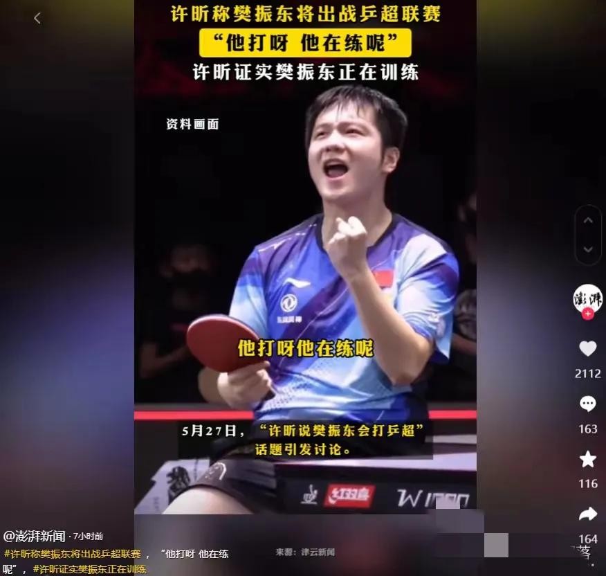 这次爆料还挺有意思,源头是许昕和闫安的直播唠嗑。5月26号那天,许昕在直播间直接来了句:“小胖现在训练猛得很,球拍都快抡出火星子了!”闫安也跟着实锤,说樊振东确定要打6月初的乒超联赛,全运会也安排上了。好家伙,这就意味着消失好几个月的樊振东,真的要重回大众视野了!为啥选现在复出?有人猜他是想给老东家上海队撑场子,毕竟代表家乡出战意义可不一般;也有人觉得,国乒男队最近的表现,确实需要他回来带带节奏。