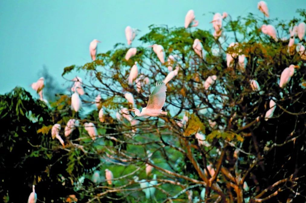 树木葱郁,水草涟漪,鸟语花香