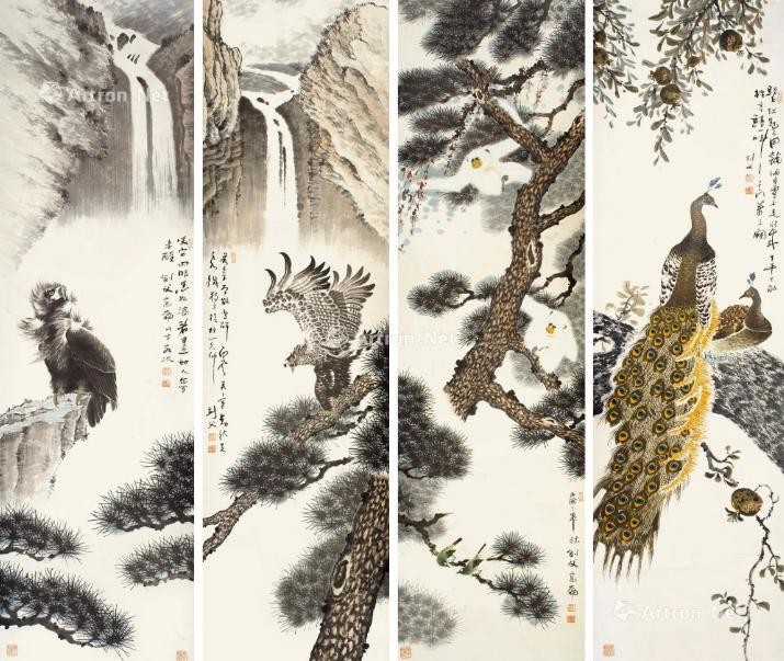 花鸟四屏