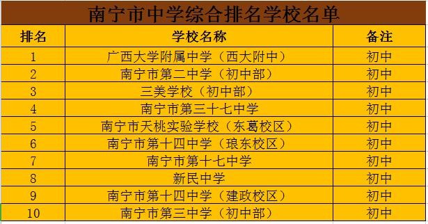 以上是小编汇编了目前南宁市小学、中学、高中学校十大重点学校排名,赶紧收藏吧!如果大家跟小编对南宁市的学校排名看法有不一致的,欢迎在留言区说出你的看法。