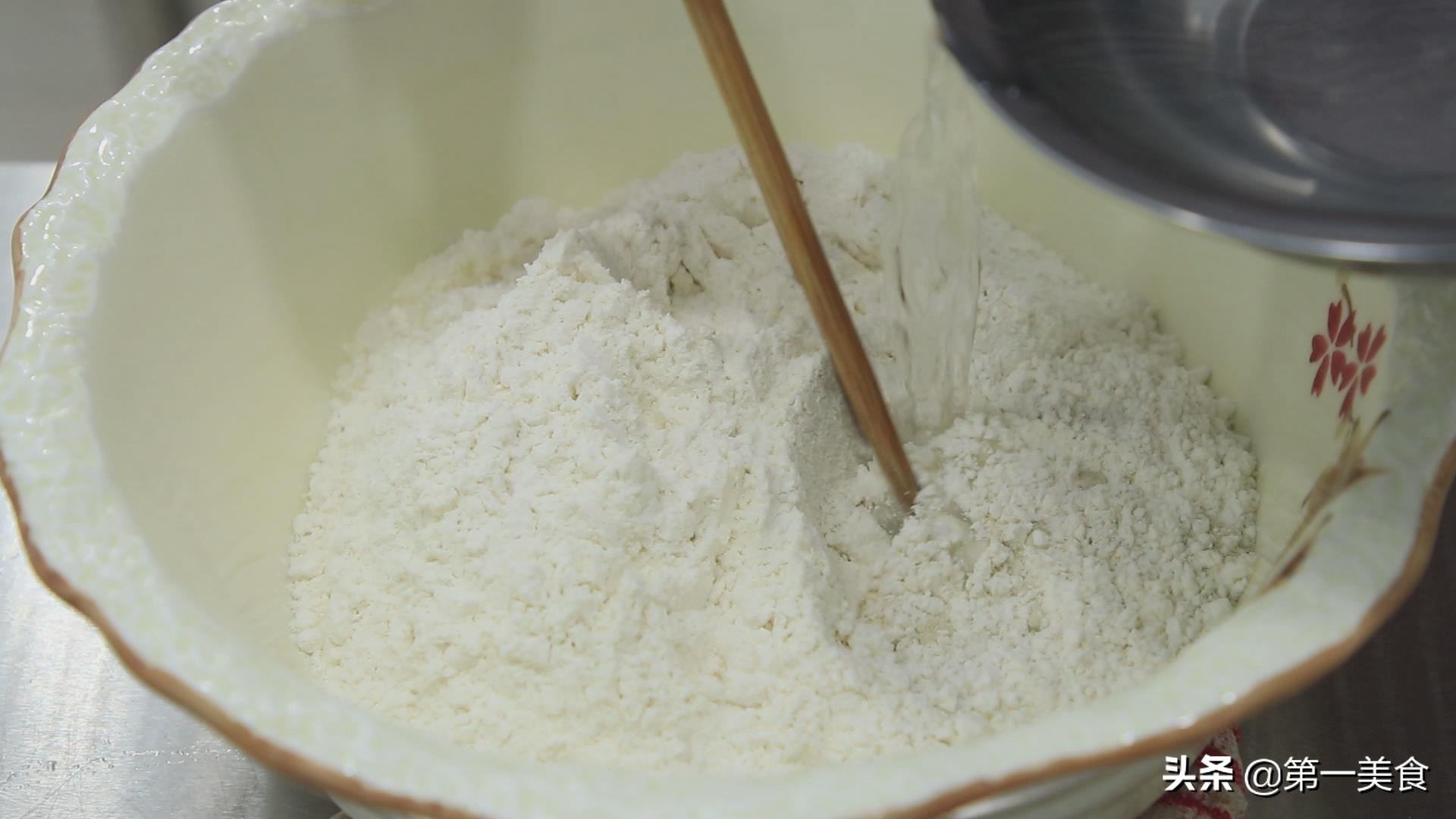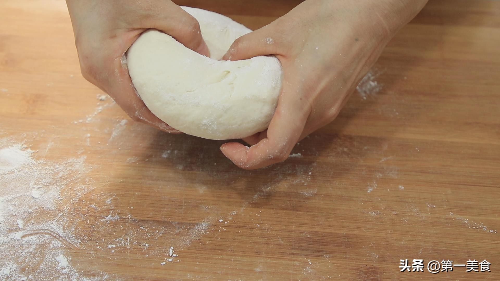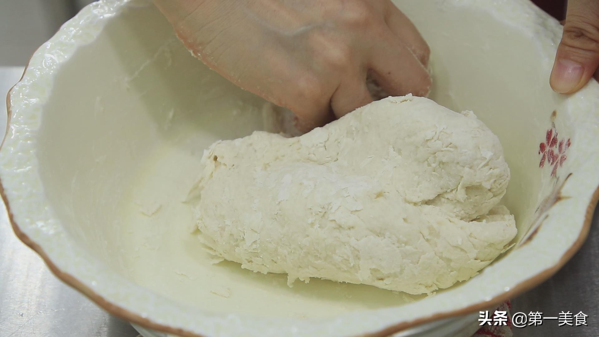 先搅成面絮,再揉成面团,反复揉搓面团,把面团揉光滑。