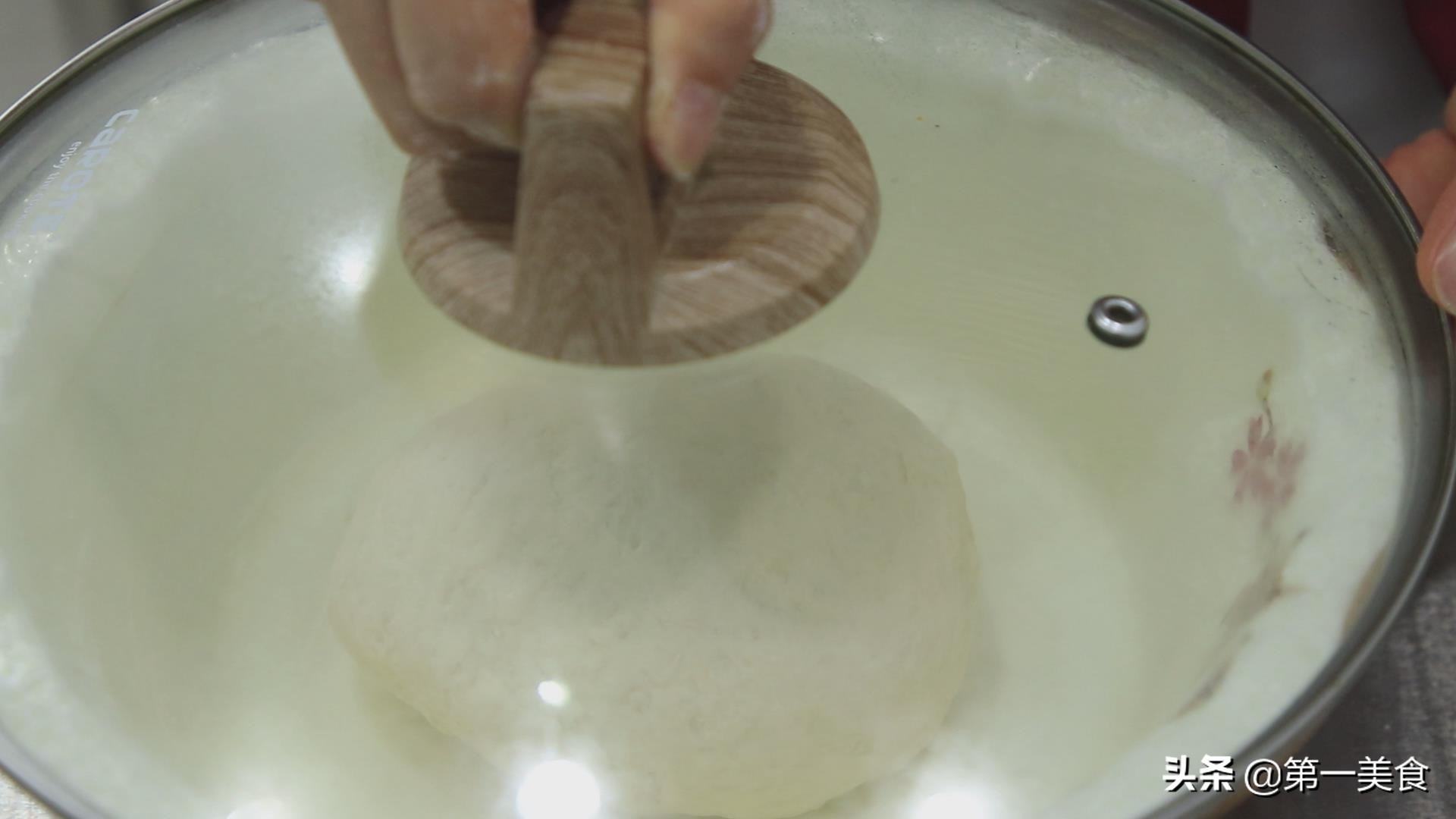 盖上锅盖,放在温暖的地方(面团放在温暖的地方,可以更快速的发酵),发酵40分钟左右。