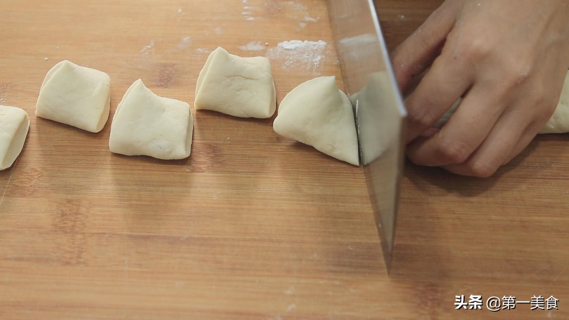 然后把面团切成一个一个小剂子。