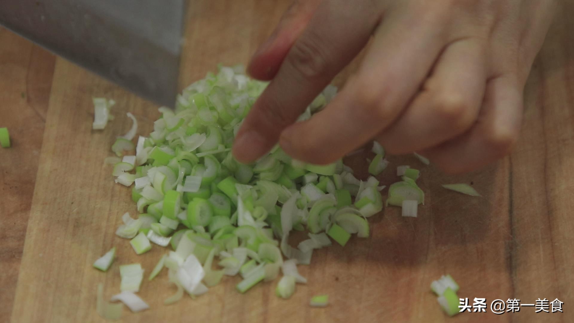 小葱划开,切成粒。