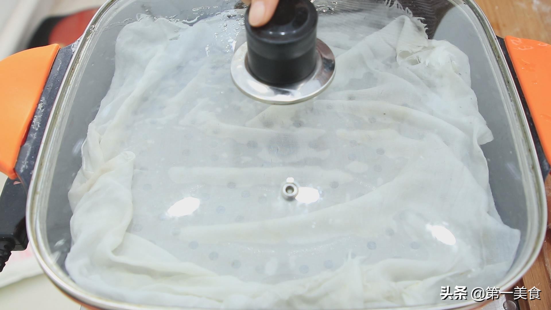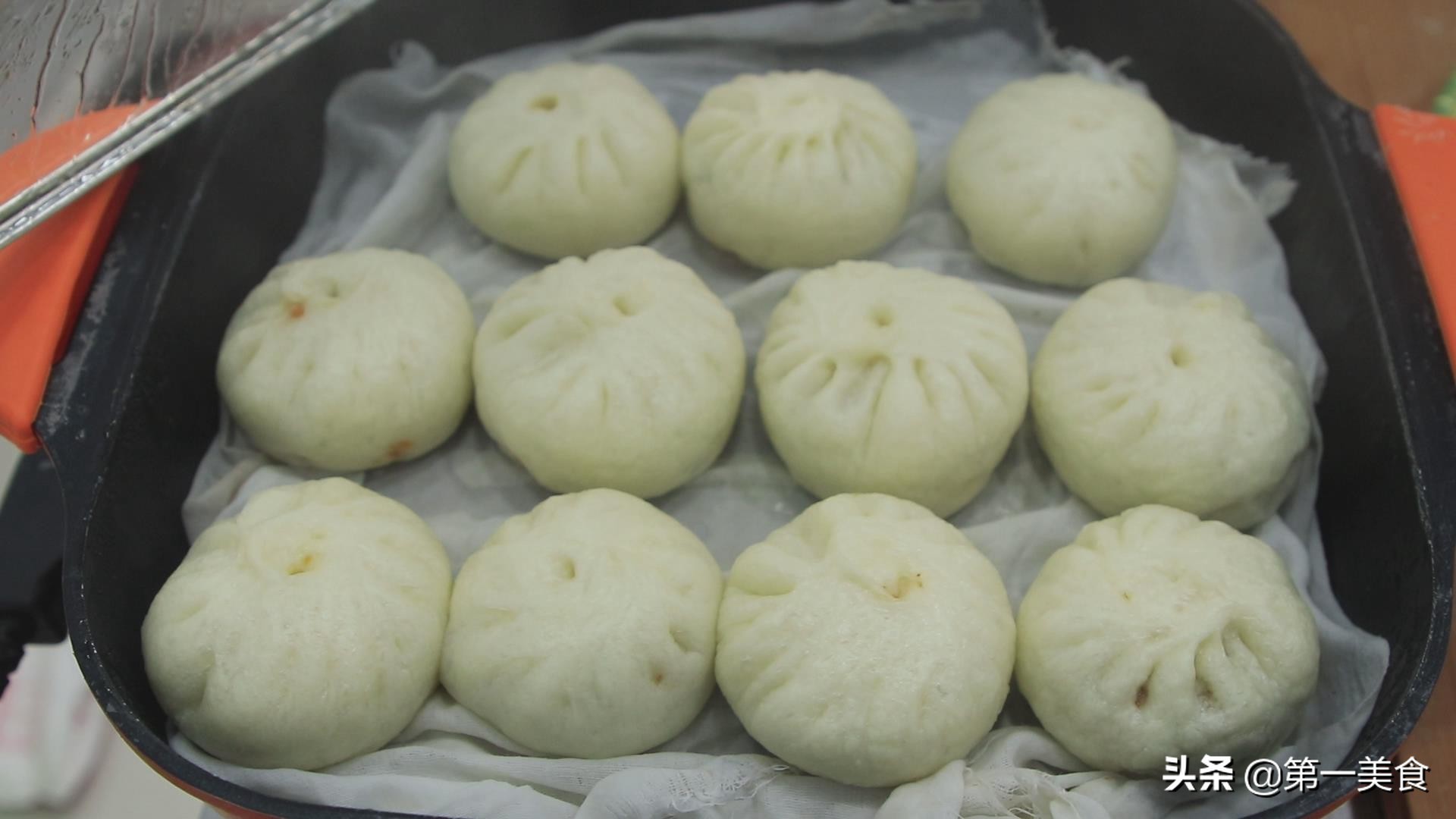 10分钟后, 我们包子上锅蒸一下。先放上一层湿棉布。