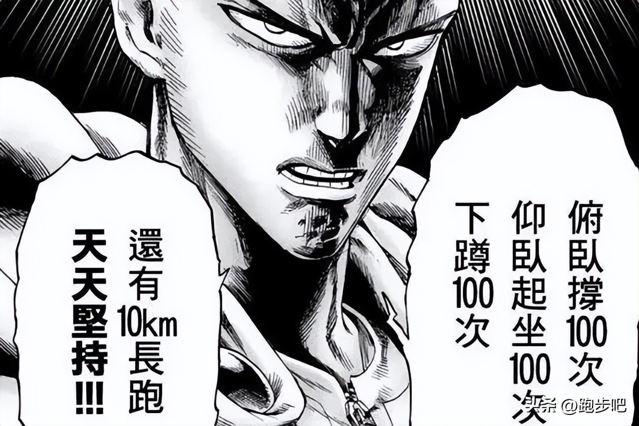 每天俯卧撑100次、仰卧起坐100次、深蹲100次,然后再跑10公里。这种训练方式被网友们称为“一拳超人挑战”。