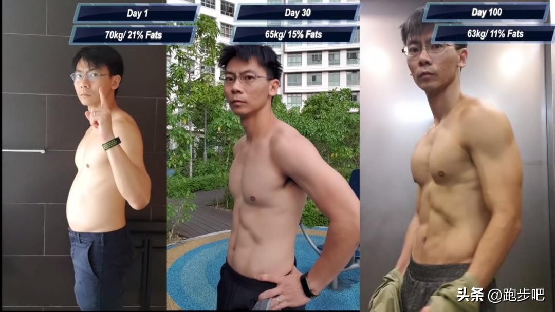 100天中,他总共减掉了7公斤,体脂率由原本的21%下降到了11%,整整减少了10%之多。从图片上,我们更是可以看出Sean那轮廓清晰的腹肌、胸肌与健美的手臂线条。