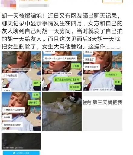 当然,这位网红受到了胡一天粉丝的私信辱骂。而在随后爆出的聊天截图中,胡一天更是疑似借着恋爱的名义欺骗女性。