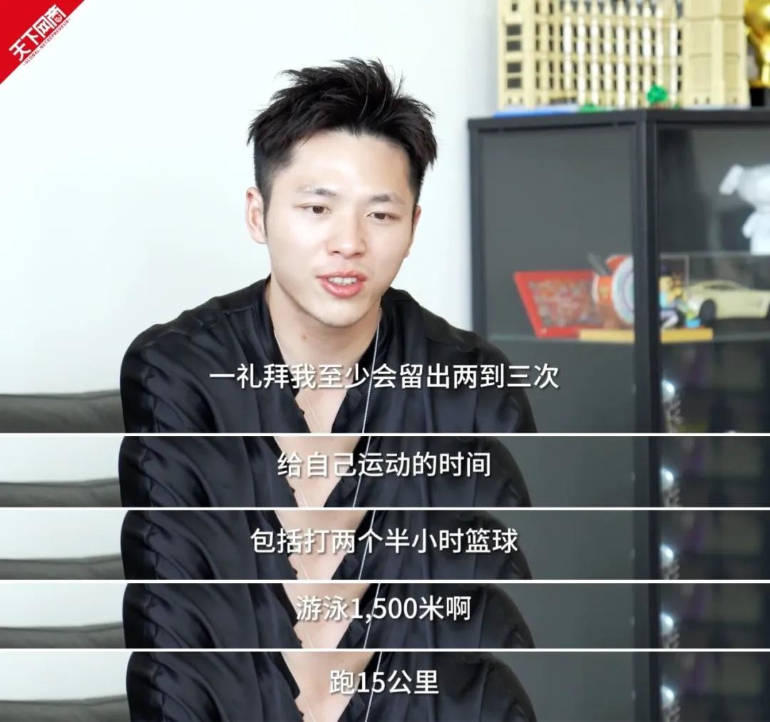 在事业上,二叔认认真真、勤勤恳恳。在身材管理方面,二叔更是自律得很,他每周至少锻炼三次,打篮球两个半小时,游泳1500米,跑步15公里!光是看他的健身计划就觉得自己在偷懒了。