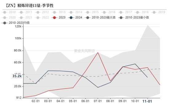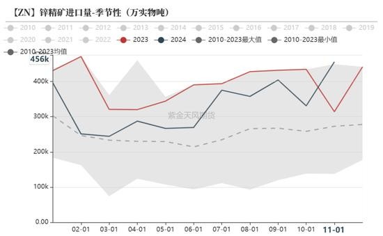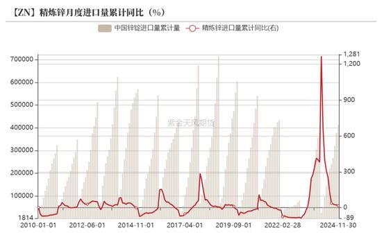 2024年国内炼厂维持较低月产,锌锭进口补充驱动较强。