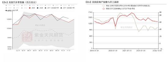 海外的锌需求主要集中在汽车和地产板块。房地产市场,美国房地产指数在2月出现环比改善后,持续回落;汽车市场,美国商务部数据显示2024年1-11月,美国汽车销量为1482.76万辆,同比增长2.2%。