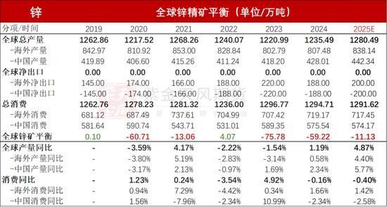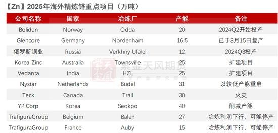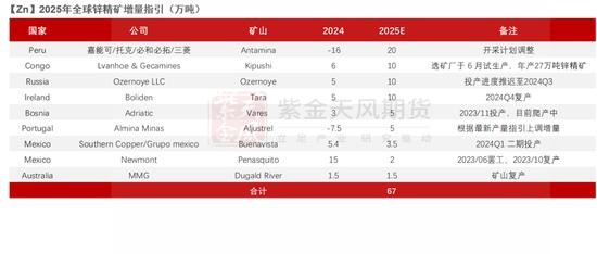 产量方面,预估25年新增锌精矿45万吨,同比增速4.87%;其中海外新增产量30万吨,同比增速4.40%;