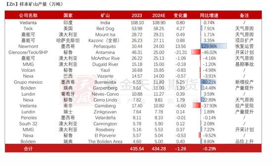 贡献较多锌精矿增量的矿山包括Peñasquito、Buenavista和CerroLindo等,带来较多锌精矿减量的矿山包括Antamina和Gamsberg等。